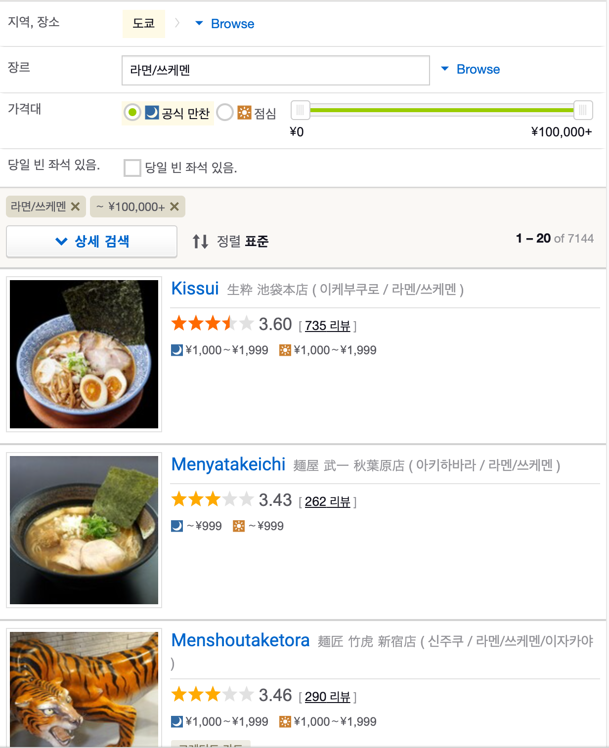 일본의 음식점 검색 서비스 타베로그는 사용자의 기호에 맞을 가능성이 높은 아이템부터 차례대로 정렬한 리스트를 사용자에게 제시한다.